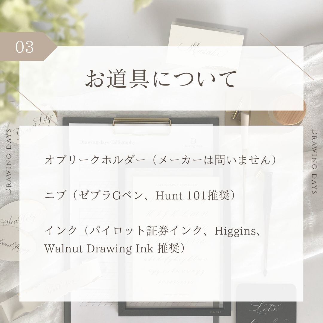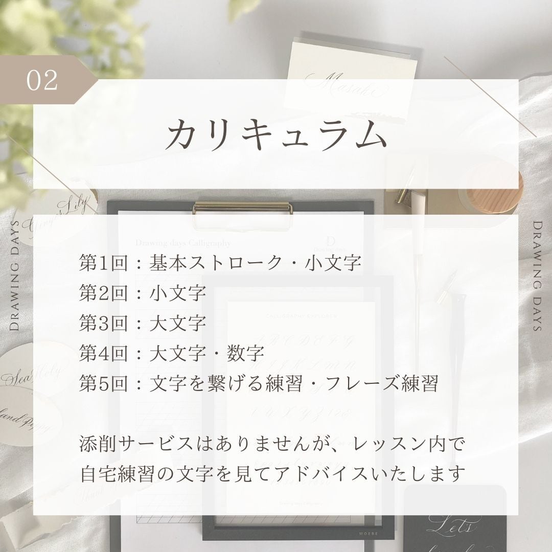 Drawing daysのカリグラフィーレッスンは、書き方の説明を聞いて終わりということはありません。
